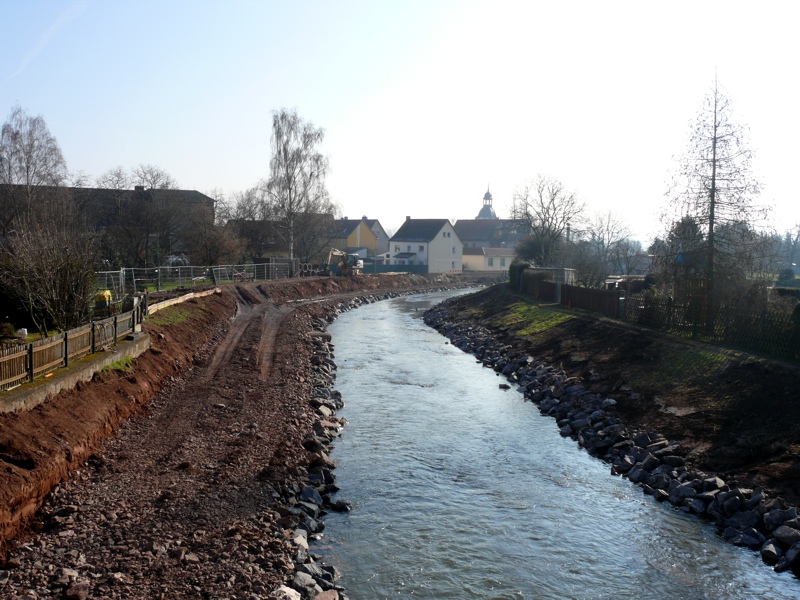 Der Verlauf des Radwegs zeichnet sich hier bereits ab. Gut zu sehen der deutlich größere Querschnitt des Flussbettes. Helmeregulierung 2011