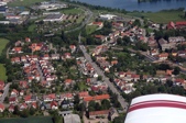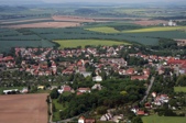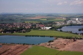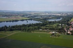 Vorn rechts ist eine Ecke von Bielen zu sehen, rechts hinter den Kiesteichen das südlich von Nordhausen gelegene Industrie-