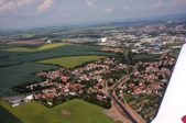 Blick aus Richtung Nordhausen über Sundhausen zur Windleite. Das Gewerbegebiet ist zu dieser Zeit noch teilweise im Bau;