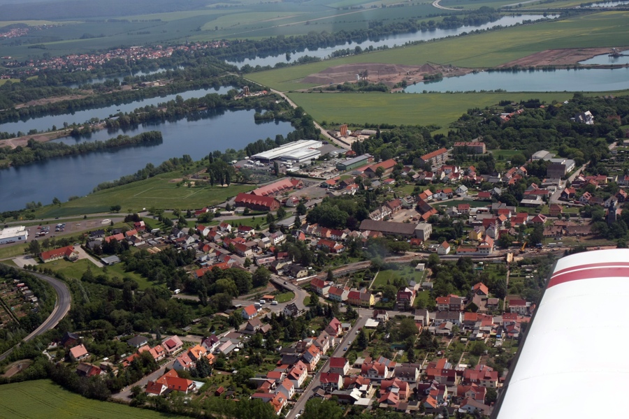 Vorn die Neue Straße und die Wehrstraße, in Bildmitte das Schreibersche Gut und der Scheunenhof.
