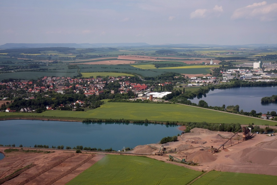 Links im Hintergrund befindet sich das Gewerbegeit zwischen Sundhausen und Nordhausen.
