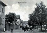 Ganz früher war dies die Martinsgasse. Mit dem Schulneubau 1910 und dem Abriss einiger alter Scheunen wurde sie gleichzeitig zu einer gepflasterten Straße ausgebaut und verbreitert. Dabei bekam sie auch ihren jetzigen Namen.