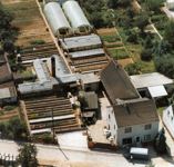 Gesamtanlage der Gärtnerei mit Gewächshausanlagen und Blumengeschäft.